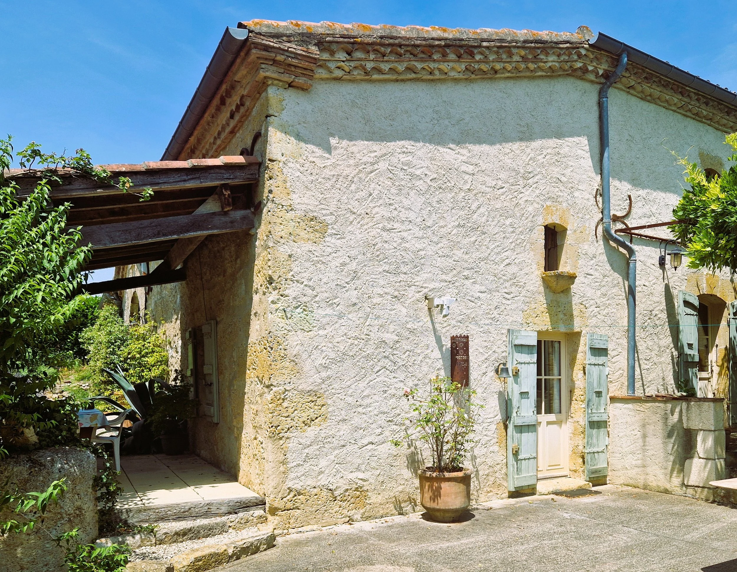Elegant 3-bedroom stone house set in over 2 hectares with pool, guest accommodation and lovely rural views, near a village between Lectoure and Fleurance.